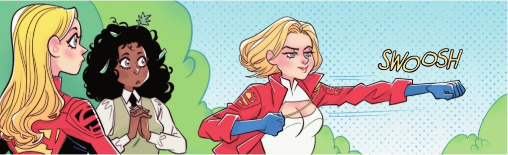 En este número, Power Girl y Supergirl se ven envueltas en una serie de actividades que podrían considerarse ilegales (técnicamente) que las llevan al inusual mundo de Ferimbia. La historia funciona con la sensibilidad cómica de una película de policías amigos. Aunque este número en particular se presenta como una comedia ligera, y conociendo las historias anteriores que Leah Williams ha escrito con estos personajes, el arco está destinado a evolucionar en un cuento más reflexivo para las dos heroínas.