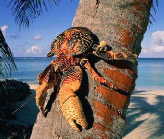 Pero hay una especie de cangrejo, el cangrejo cocotero (Birgus latro) que son exclusivamente herbívoros, este animal de gran tamaño y caparazón robusto, sube a lo alto de las palmeras para agarrar el fruto, cortarlo y comer la pulpa, vaya que tiene fuerza en esas tenazas