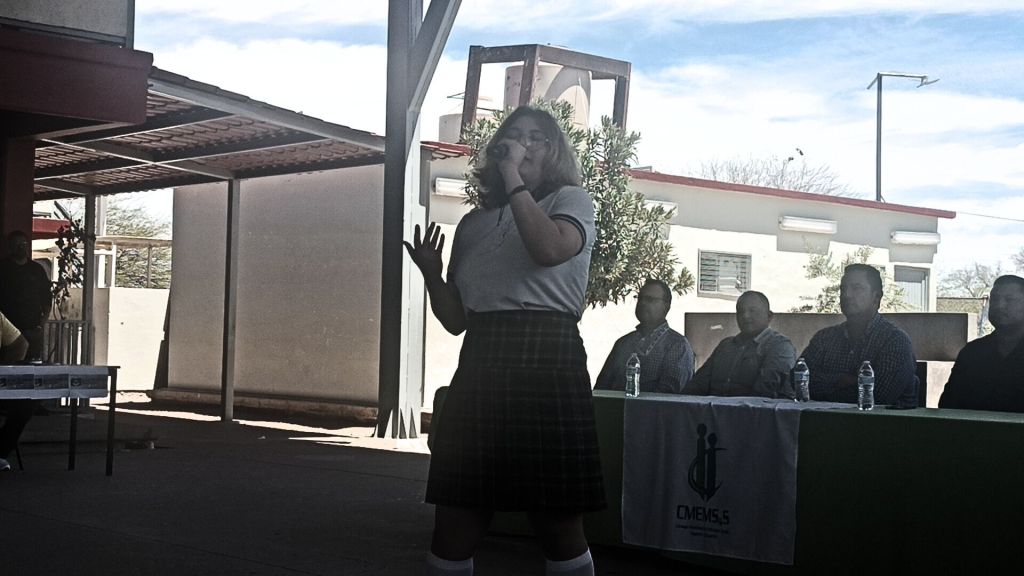 Durante el evento, la alumna de CONALEP Nogales, Romina Edith Pérez Hernández, de la carrera Profesional Técnico Bachiller en Electromecánica Industrial, presentó una canción para amenizar este festejo educativo.