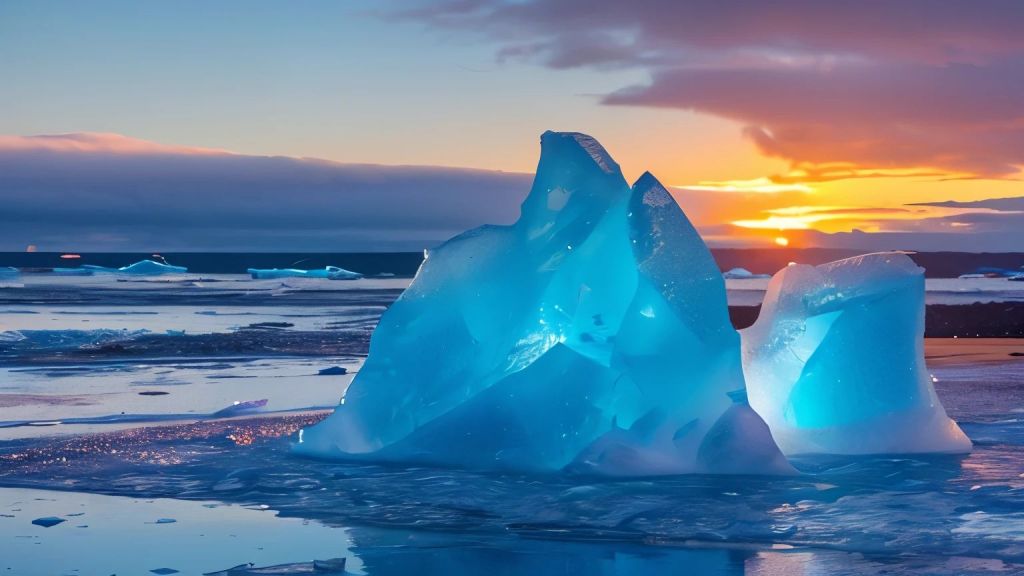 Los icebergs son grandes masas de hielo, que al desprenderse de un glaciar se convierten en esto, que después navegan por el océano hasta derretirse y convertirse en agua después de diez años, que como ya lo dije es el limite de edad de estos y suelen ser de color azul claro y blanco debido a su material que lo forma.