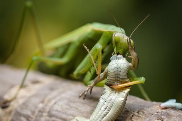 Lo más fascinante es cómo cazan. Sus patas delanteras están equipadas con espinas que sujetan firmemente a la presa, y la mantis puede empezar a comerla viva. Es un poco brutal, pero así es la naturaleza. También tienen una visión increíblemente buena para un insecto. Sus ojos pueden ver en 3D, lo que les permite calcular muy bien la distancia de su próxima comida.
