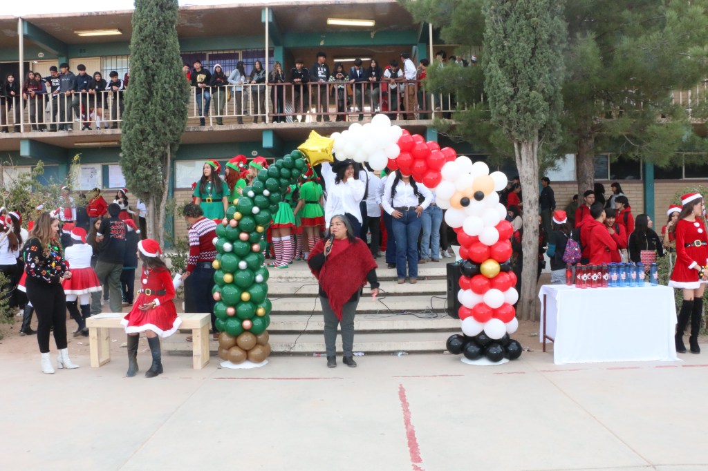Estudiantes, docentes, personal administrativo y padres de familia se reunieron en la cancha de básquetbol para llevar a cabo uno de los eventos más concurridos del año, donde entre Santa Claus, duendes, el Grinch, y otras figuras asociadas a la Navidad, hubo una presencia sin igual de un espíritu al que se le abren las puertas, especialmente en estas fechas decembrinas.