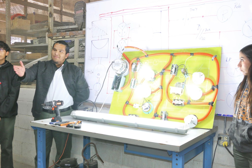 Entre luces y circuitos en los talleres del colegio, alumnos de los grupos 309 y 310, pertenecientes al tercer semestre de dicha carrera, guiados por el maestro David Gutiérrez Sobarzo, presentaron proyectos que corresponden a las materias de Instalaciones Eléctricas y Electromecánica. Con ellos, se mostraron las habilidades y conocimientos que los estudiantes han pulido en año y medio de instrucción profesional.