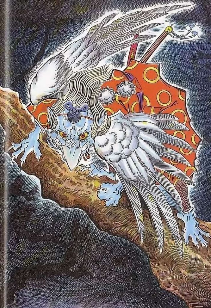 Los tengu son criaturas mitológicas que suelen representarse con una mezcla de humano y ave. Son conocidos por su habilidad para volar, su destreza en las artes marciales y su comportamiento travieso, a menudo relacionado con la protección o el desafío a los humanos. Aunque su descripción varía según la región y el período, la imagen clásica de un tengu es la de una figura con un largo pico (similar a un cuervo o un ave rapaz), orejas puntiagudas y una vestimenta de monje o samurái.