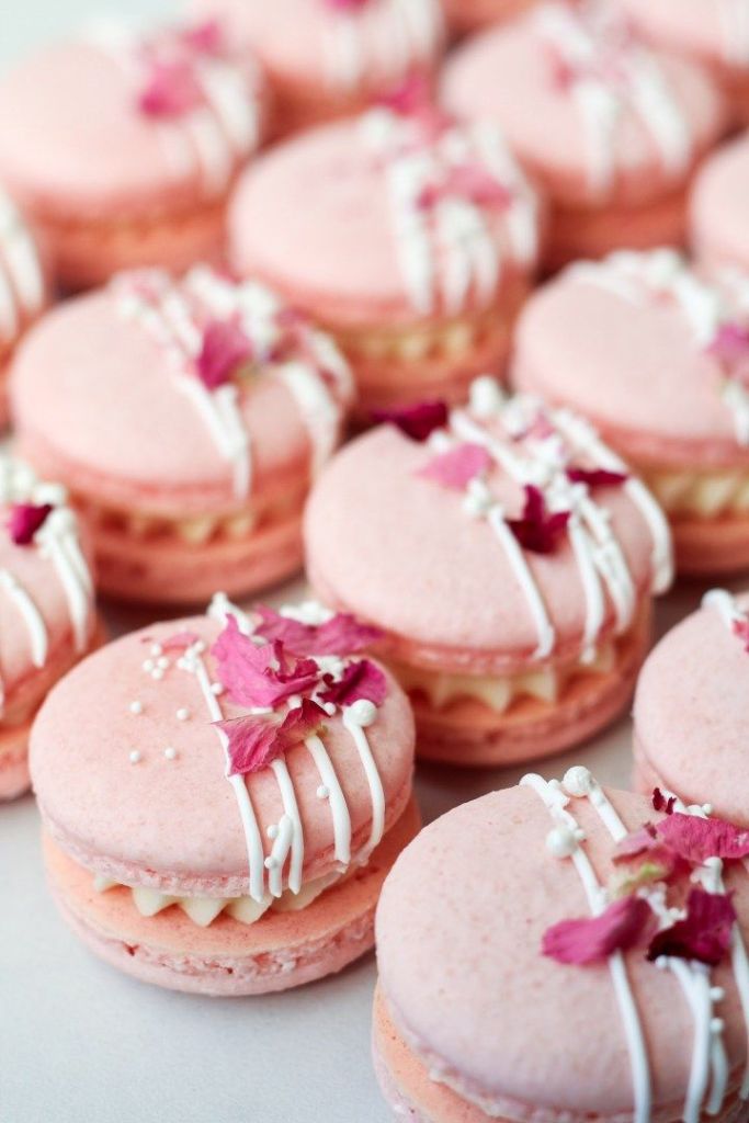 - Macarons: capa crujiente y relleno suave y cremoso de diferentes colores y sabores.