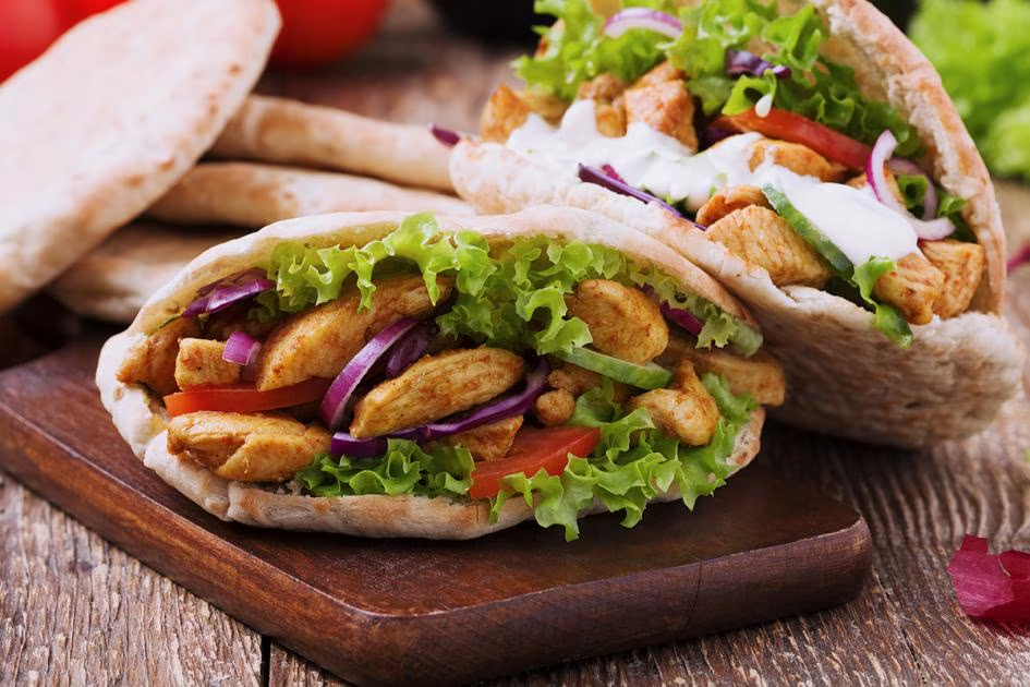 - Calienta ligeramente los panes de pita en una sartén o en el microondas durante unos segundos hasta que estén suaves y cálidos.