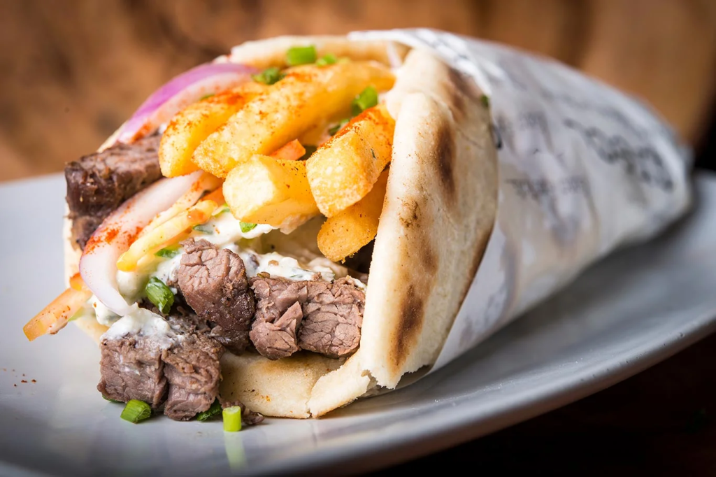 - Agrega una generosa cantidad de tzatziki sobre la carne y los vegetales. Si quieres, también puedes añadir algunas papas fritas para darle un toque extra de sabor y textura.
