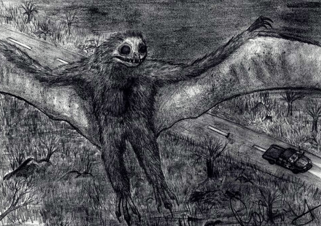 Uno de los casos más citados fue cuando varios trabajadores afirmaron haber visto a la criatura cerca de una carretera en construcción. Según su relato el ser descendió desde lo alto, se posó brevemente y luego volvió a elevarse con una fuerza que desafiaba la lógica. El incidente fue tan impactante que durante semana la zona permaneció prácticamente desierta al caer la noche.